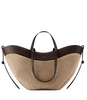 Tote bag featuring waves, folds, and curves that can be styled in two ways. Basket-style, with its sides open and straps on the outside, or as a more enfolded flower-shaped bag, with its sides tucked in and its straps crossed on the inside. This invitingly soft edition is crafted from high-quality alpaca and mohair wool, known for its comforting texture.