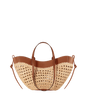For this edition, the Cyme Mini, a compact sculptured tote bag, has been embellished with raffia, a naturally flexible plant fiber. Its wavy patterns are handcrafted by artisans in Madagascar using an innovative combination of crochet stitches. Needle embroidery connects the lines of openwork raffia to the leather. This edition embodies the intersection of raffia artisanship and leather goods expertise.
