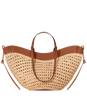 For this edition, the Cyme, a sculptured tote bag, has been embellished with raffia, a naturally flexible plant fiber. Its wavy patterns are handcrafted by artisans in Madagascar using an innovative combination of crochet stitches. Needle embroidery connects the lines of openwork raffia to the leather. This edition embodies the intersection of raffia artisanship and leather goods expertise.
