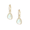 14K Yellow Gold Pave Diamond & Moonstone Drop Pierced Huggie Earrings