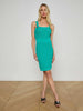 The Rehannin is a fitted pointelle knit dress in a vibrant lagoon hue, featuring a ribbed waistband for a flattering silhouette. Wear alone or with its coordinating cardigan.