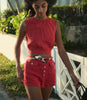 A playful summer short, the ‘40s-inspired Darling Short is tailored in soft, midweight linen and fully lined with cotton voile. A line of mother-of-pearl buttons extends down the front, plus two patch pockets to tuck essentials.