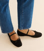 The Eleni is a soft suede flat with an elastic strap that can be styled as a Mary Jane, or tucked underneath your foot for a classic ballet flat look. With a round toe and flexible leather sole for comfortable all-day wear, it’s detailed with adjustable grosgrain trim and an elastic bow, allowing you to cinch the shoe as much as you’d like.