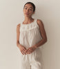 Taking cues from our beloved Frances Top—which we first designed in Spring 2019—the Fidella is a sleeveless top crafted from soft, lightweight organic cotton voile. The high square neckline is trimmed with ruffled lace, while a line of mother-of-pearl buttons extends down the center front. The yoke is adorned with alternating panels of ruching and inset lace. Leave it loose, or tuck it into your favorite pair of high-waisted jeans.