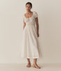 We’ve reimagined our forever-favorite Quinn Dress in a lightweight organic cotton voile with allover eyelet embroidery. The Quinn features a scoop neckline with an adjustable tie and playful keyhole detail, a gathered bust, and short puffed sleeves. A fitted bodice with elasticized smocking gives way to a fully lined, midi-length skirt.