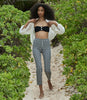 Inspired by 1960s swimwear, the Riva Bikini Top is a bandeau top crafted from a stretchy, honeycomb texture swim fabric and fully lined for comfort. A sweetheart neckline is accented with two oversized faux shell buttons, while zigzag stitching finishes the edges.