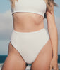 The High Waist Cheeky Bikini Bottom - Ribbed - White