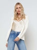 An effortlessly chic knit blazer in lustrous white. Classic tailored details like lapels, shoulder pads, and patch pockets complement soft, luxurious knit done in a lightly textured stitch. Clean silhouette tapers at waist for a flatteringly sleek fit. Tonal embossed-dome button closure.